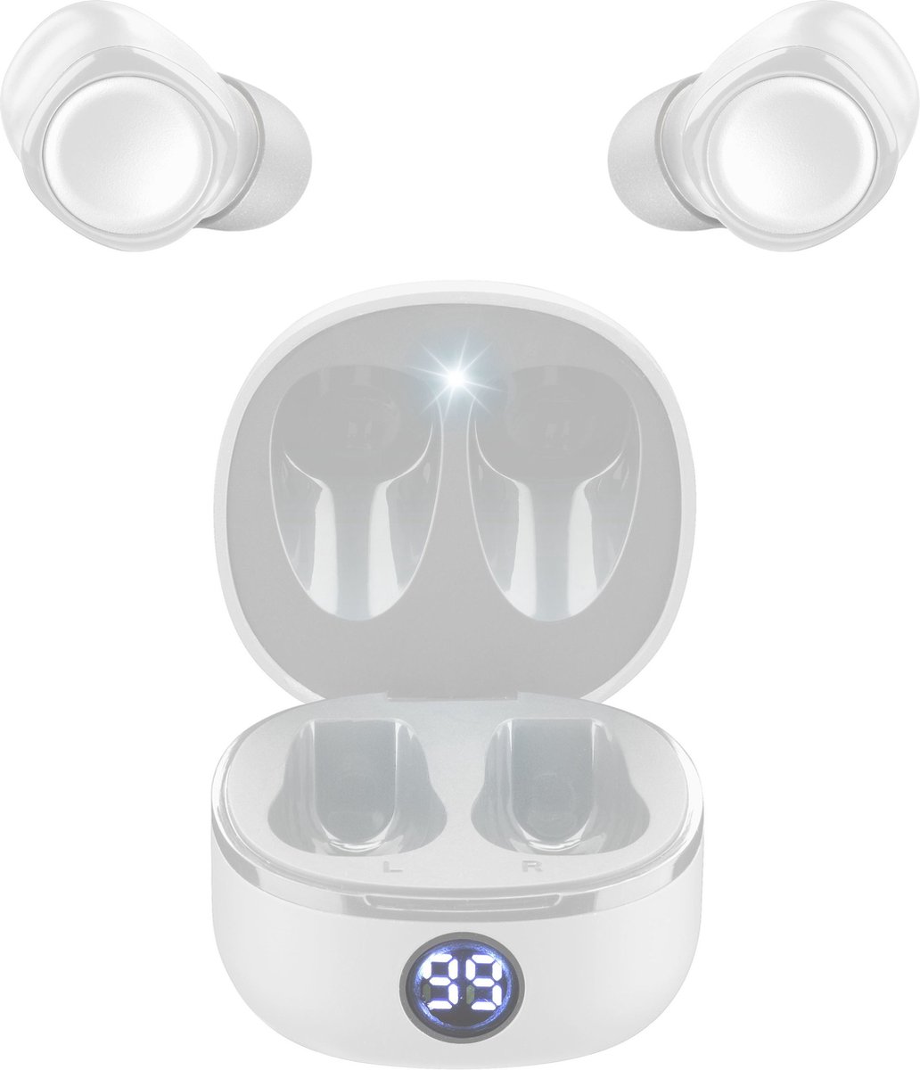 Wit True Wireless In-ear Headset met Bluetooth 5.0 en ingebouwde accu.