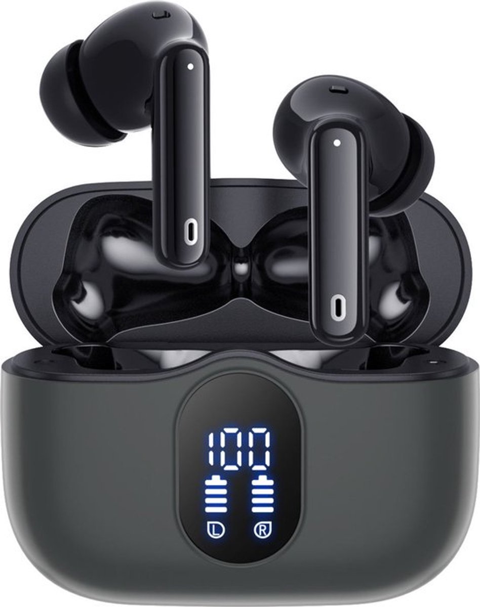 Handige LED-display: Het luxe LED-scherm op de oplaadcase geeft je een duidelijk overzicht van het batterijpercentage van je oordopjes, zodat je nooit zonder stroom komt te zitten.