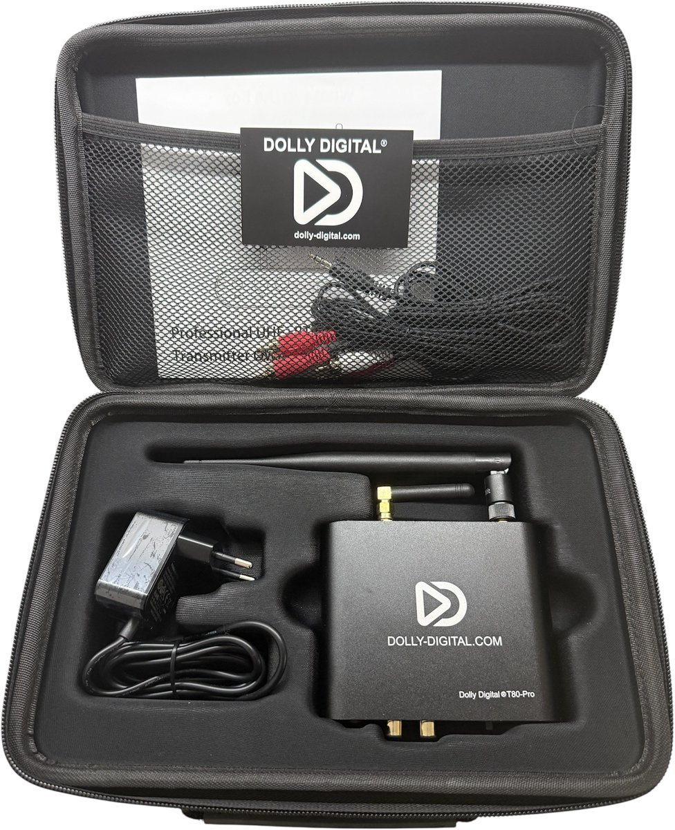DOLLY DIGITAL© original zender type T80pro Bluetooth met ingebouwde accu en microfoon ingang geleverd in professionele carry case.