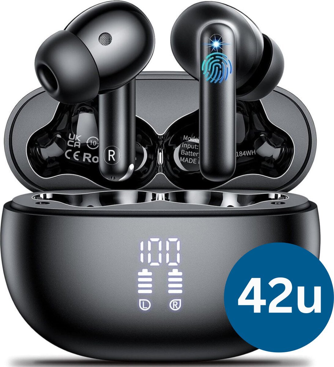 evanell°® Oortjes Draadloos Bluetooth V5.3 – Draadloze Oordopjes – In-Ear voor Sport, Bellen, Muziek – 42u Batterij – Microfoon – Touch – iOS/Android