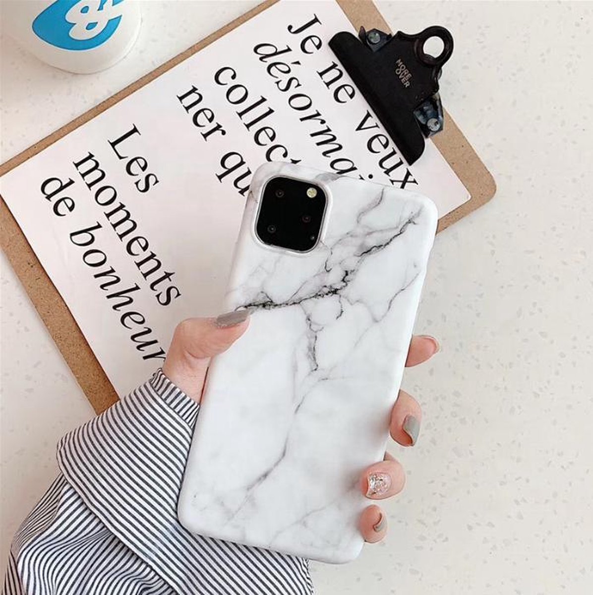 Dit Iphone 11 hoesje van Winkelparadijs is de nieuwste trend van 2020. Het heeft een marmeren uitstraling en ziet er stijlvol uit. De bumper van het hoesje steekt boven het beeldscherm uit, waardoor die minder snel beschadigd bij vallen. De hoesjes zijn gemaakt van Thermoplastische Polyurethaan en Polycarbonaat. Door deze materialen is het hoesje steviger, kleurvast en beter bestand tegen hogere temperaturen dan de gangbare hoesjes.