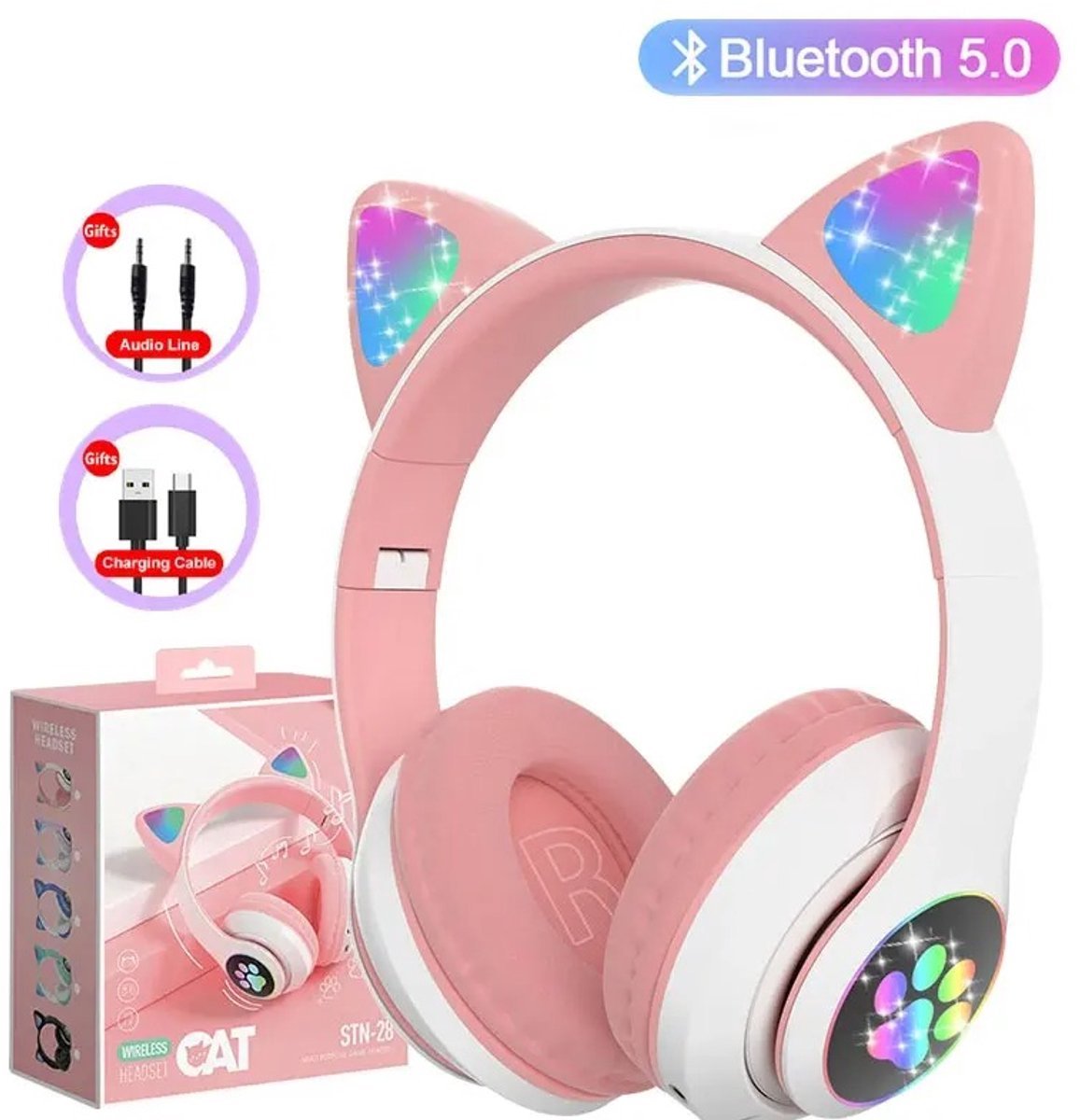 Ervaar een vrolijke en functionele luisterervaring met deze unieke kattenoortjes hoofdtelefoon. Perfect voor kinderen en tieners, combineert het speelse ontwerp van regenboogkleurige kat oren met moderne technologie zoals Bluetooth 5.0 en actieve ruisonderdrukking. Ideaal voor muziek, games of online lessen, deze hoofdtelefoon brengt plezier en functionaliteit samen.