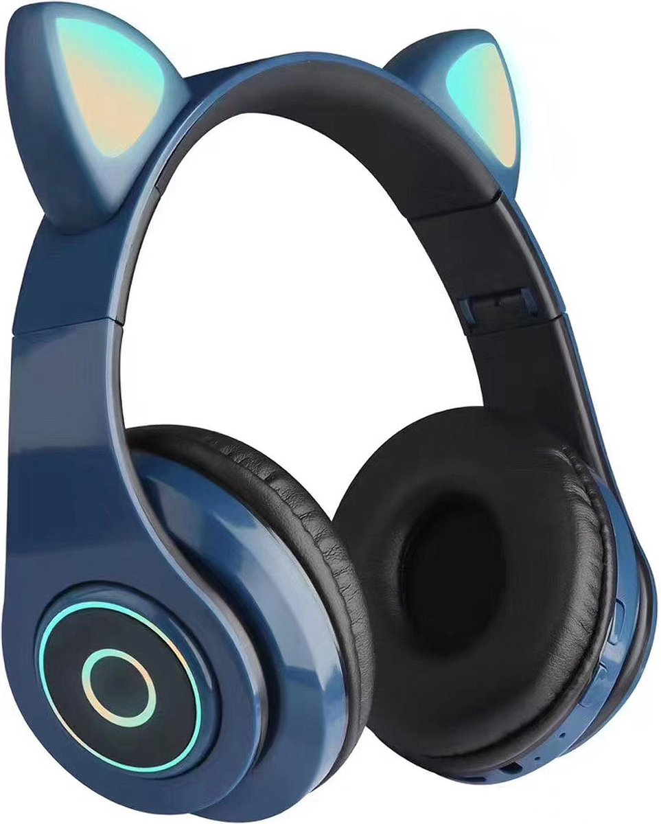 Kinder draadloze Bluetooth koptelefoon kitty cat met led kattenoortjes donker blauw .