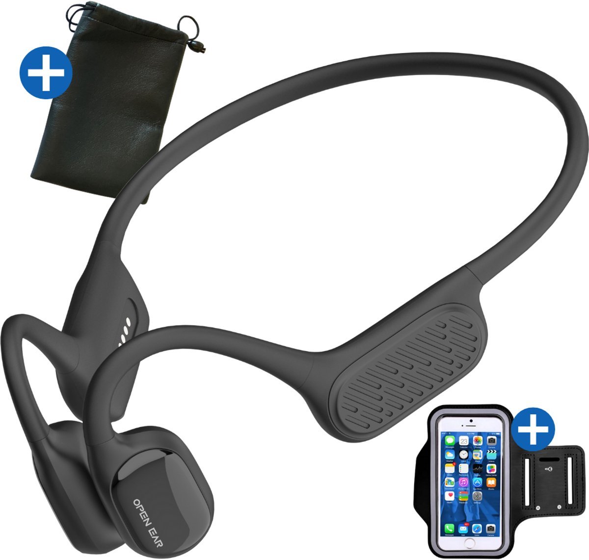 - Bone conduction technologie: verbonden met je favoriete muziek en je omgeving