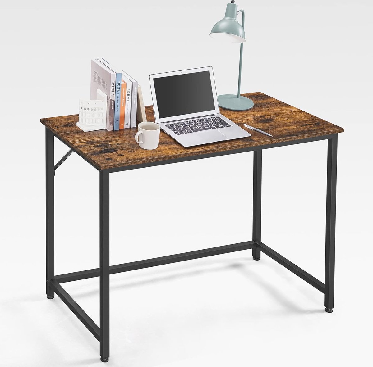 Dit veelzijdige bureau is perfect voor zowel kantoor als thuiskantoor met een warme vintage afwerking en een robuust zwart stalen frame. Het biedt niet alleen stijl maar ook stabiliteit dankzij de versterkingsstalen stutten die een belasting tot 50 kg aankunnen. Ideaal voor kleine ruimtes dit bureau is 100 cm lang en past zelfs in de meest krappe ruimtes. Het in elkaar zetten is eenvoudig met genummerde onderdelen en duidelijke instructies. Creëer je ideale werkplek met dit compacte bureau!