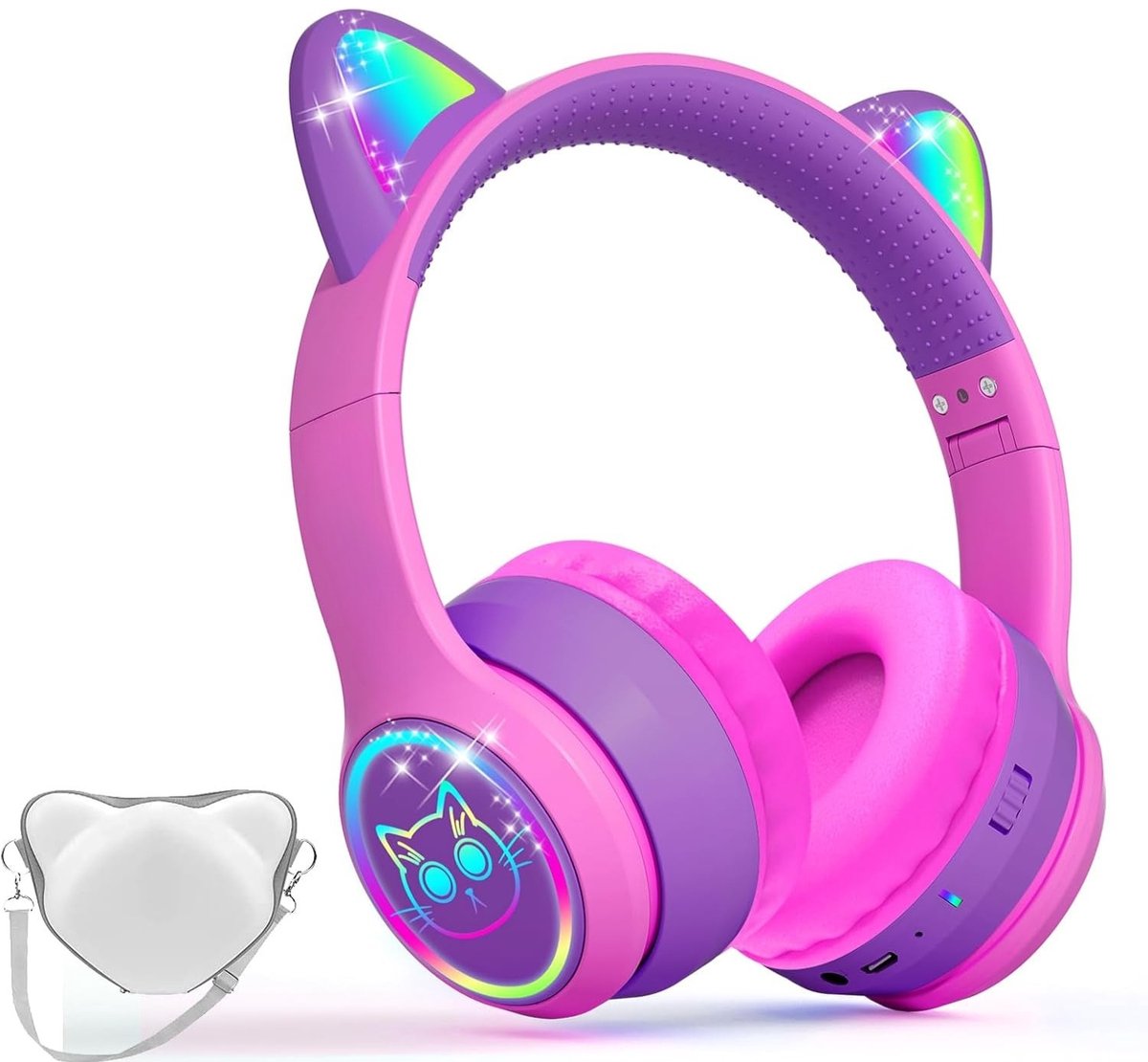 Deze hoofdtelefoon is gemaakt van versterkt materiaal, waardoor hij tegen een stootje kan en ideaal is voor actief gebruik. De LED-lichten geven de koptelefoon een speels accent dat kinderen geweldig vinden, perfect voor in de klas of onderweg.